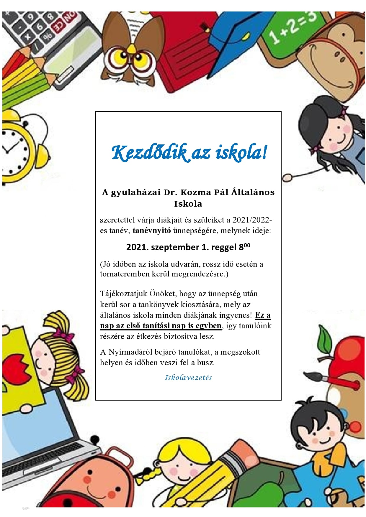 Hirdetmény az általános iskolák 1. évfolyamára történő beiratkozásról …
